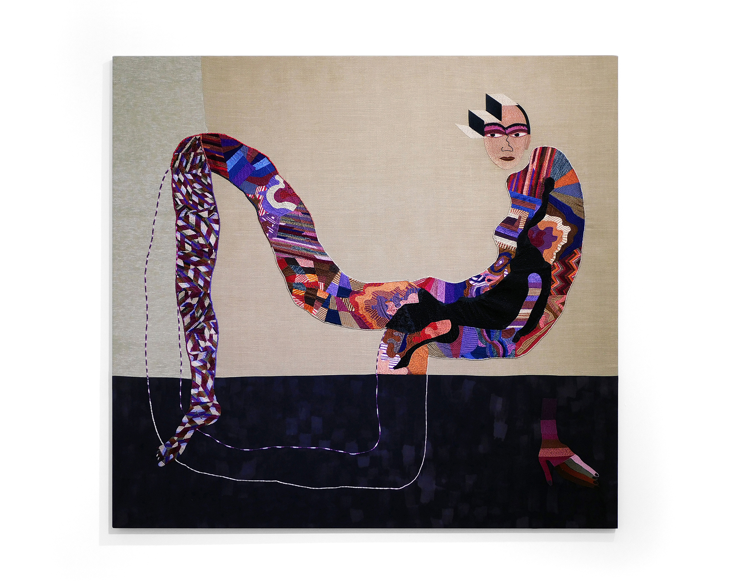 Cabeza Hueca, 2025 / Bordado sobre tela / 220 x 120 cm